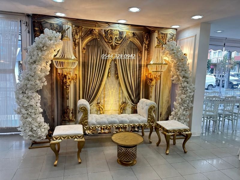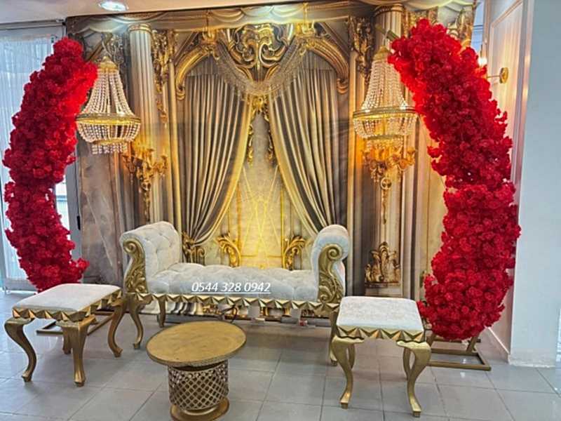 - Aksesuarlar ve Dekorasyon: Tahtın yanında kullanılan arka fon, minderler, dekoratif objeler, şamdanlar ve çiçek süslemeleri fiyatı doğrudan etkiler. Bununla birlikte, tahtın bir paket halinde (nedime kaftanları, kına tepsisi vb. ile) kiralanması maliyeti değiştirebilir.