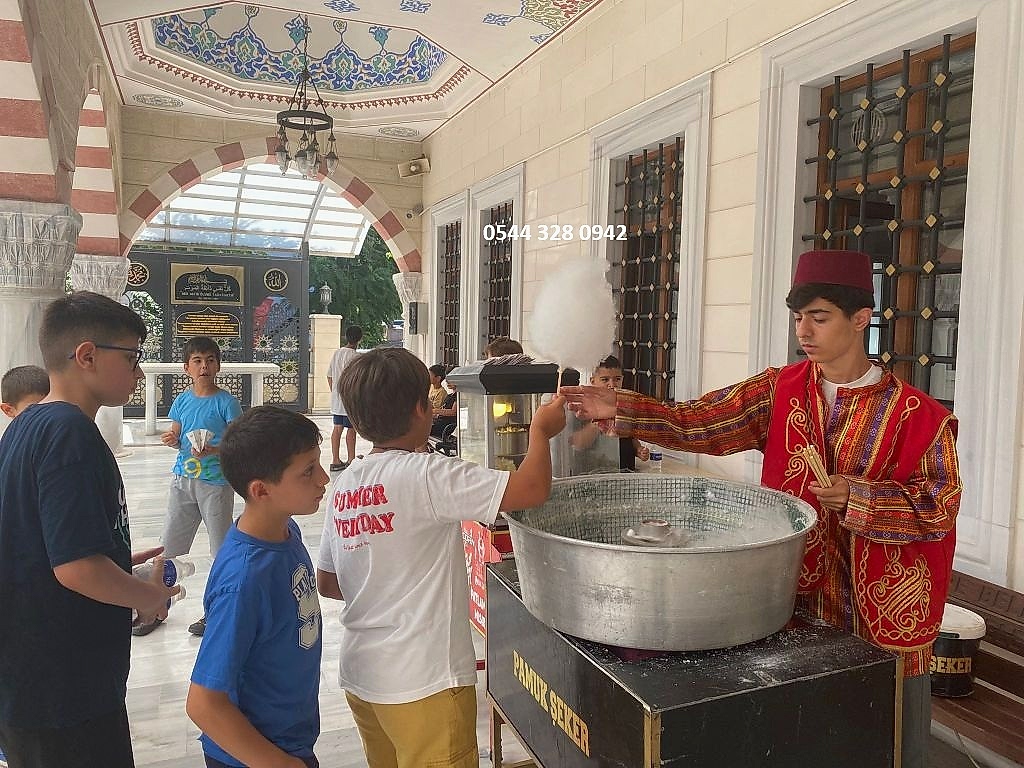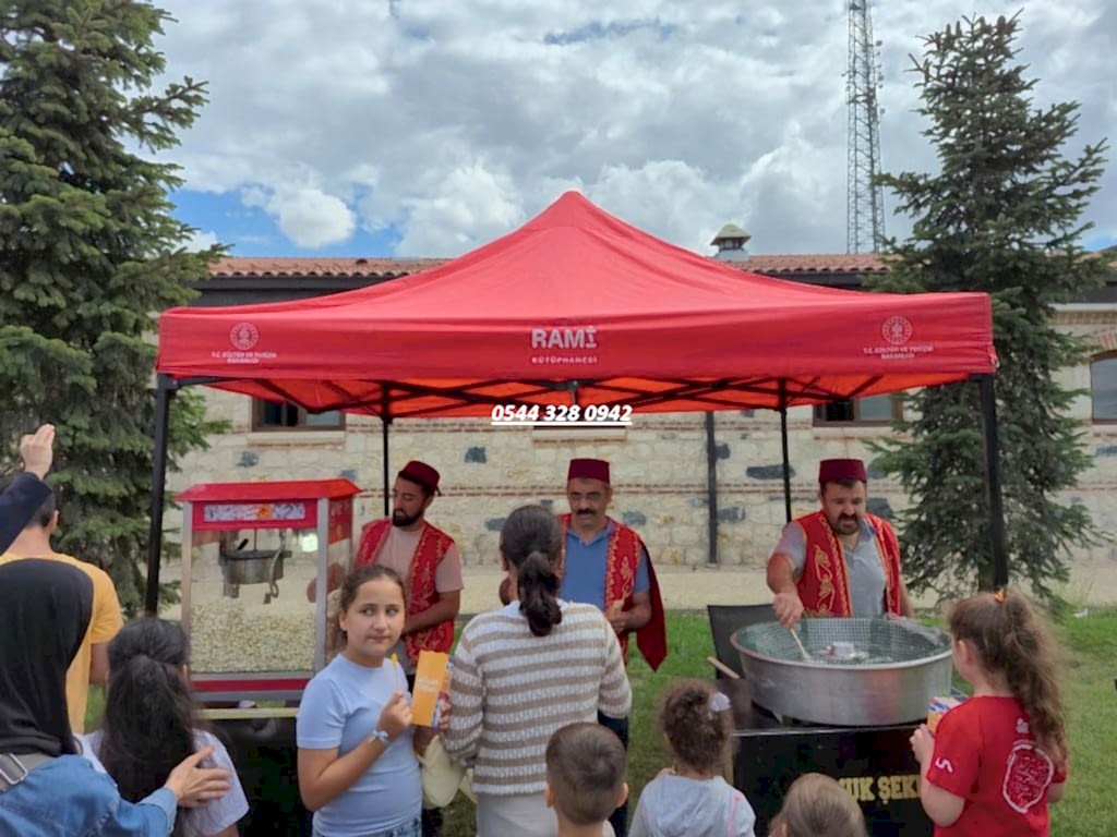Panayır, kermes ve etkinlikler için nostaljik ve modern ikram çözümleri: pamuk şeker arabası, popcorn makinesi, Osmanlı macunu tepsisi ve ikram arabaları.